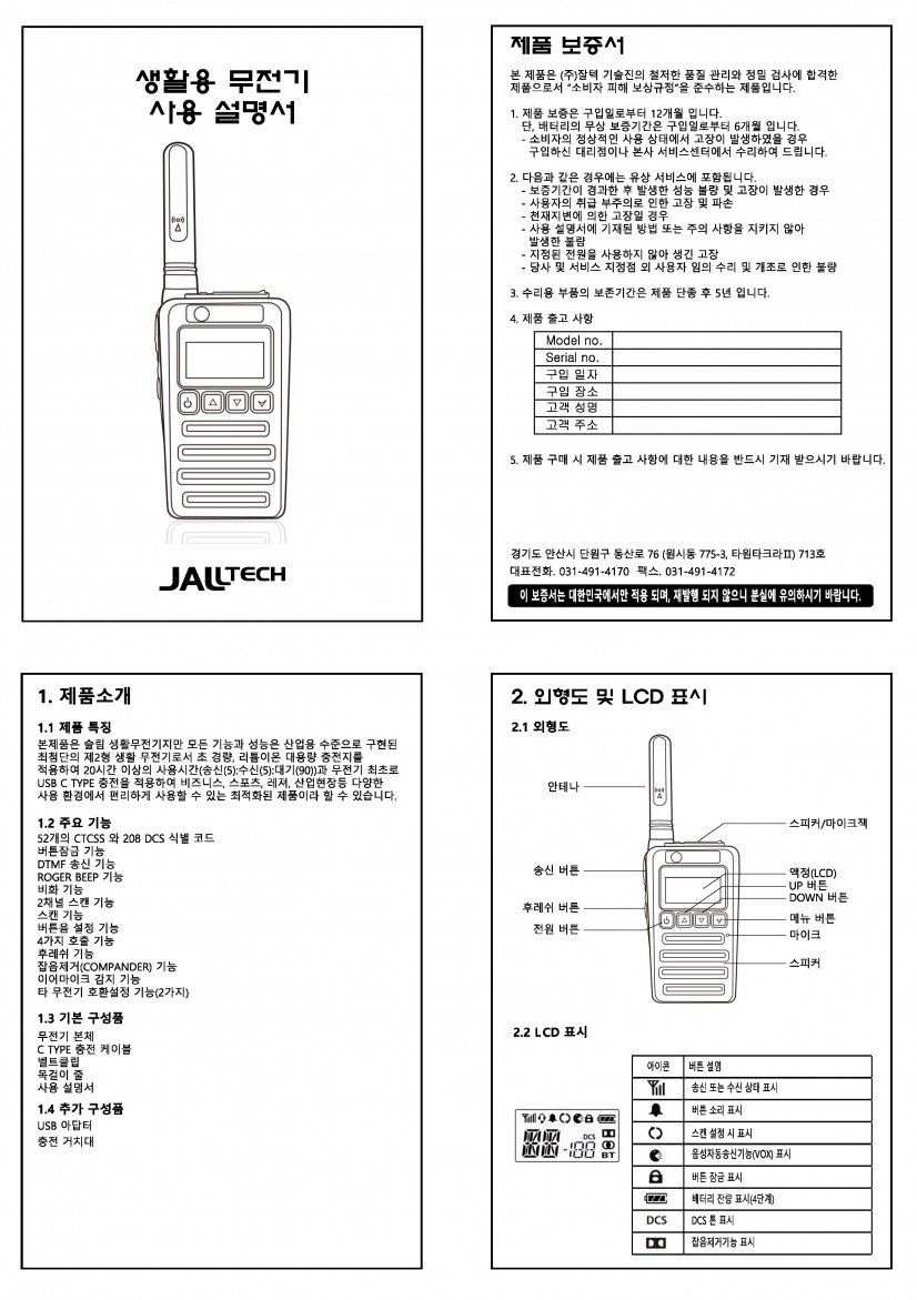 목록 [메뉴얼] JX-300 메뉴얼 작성자 잘텍 작성일 20-06-23 17:34 | 조회 50,199 | 댓글 0 본문 JX-300 생활용무전기 사용설명서입니다. 이전글다음글 댓글목록 0 등록된 댓글이 없습니다. 목록